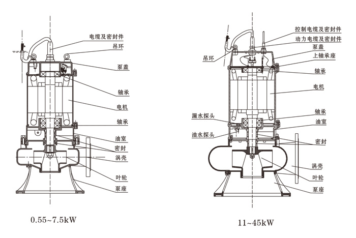 2、無(wú)內自流循環(huán)冷卻系統的泵,電機部分露出液面不得超過(guò)電機的1/2.